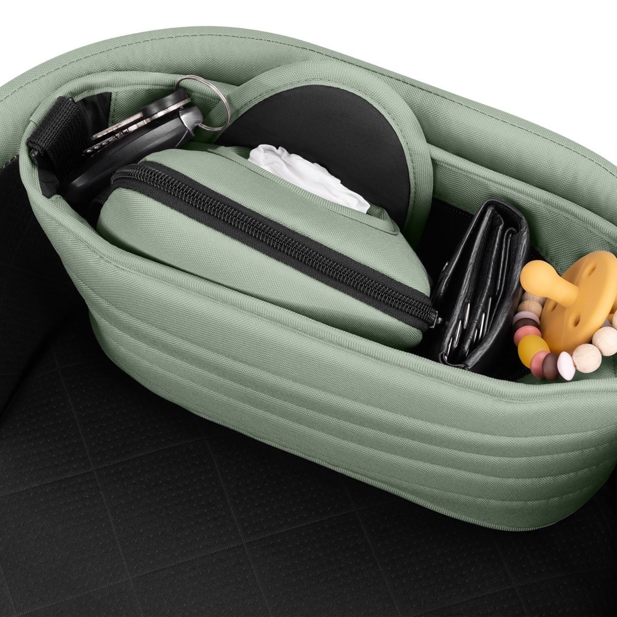 O berço vem com um organizador prático e seguro para acessórios essenciais do bebê. Duas janelas de ventilação garantem circulação de ar adequada e permitem monitorar o bebê.