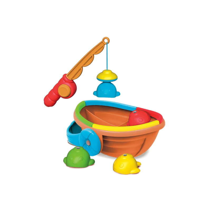 Uma cana de pesca com uma linha magnética para um funcionamento simples e imediato. Com 4 peixinhos para colocar no compartimento da cor certa.