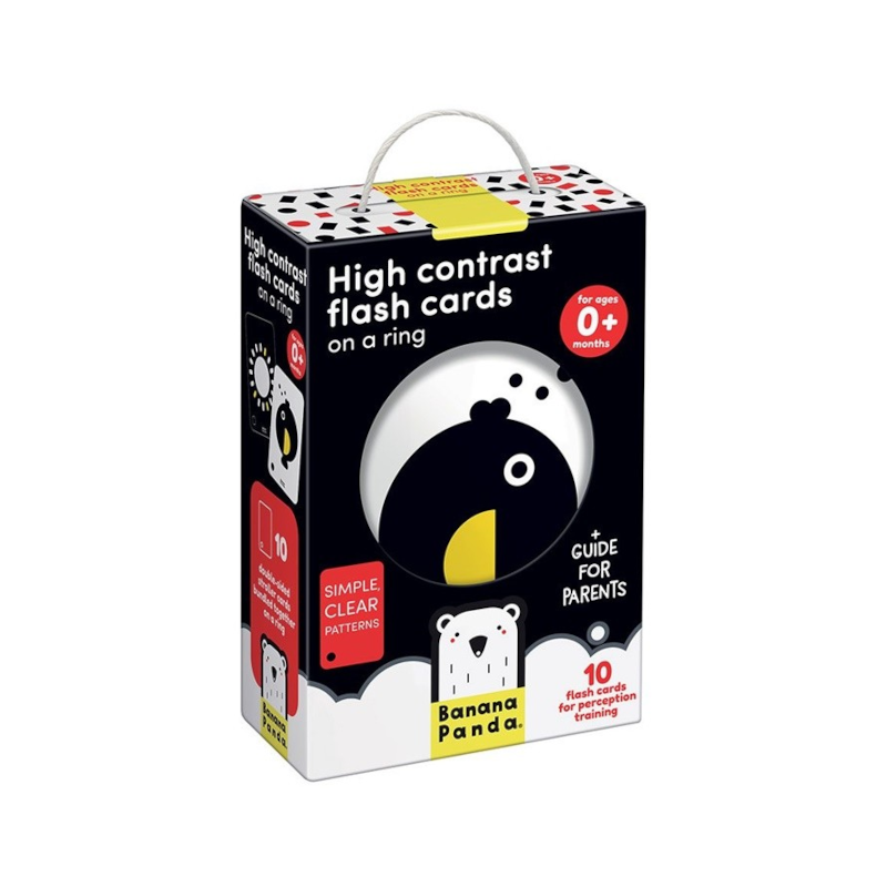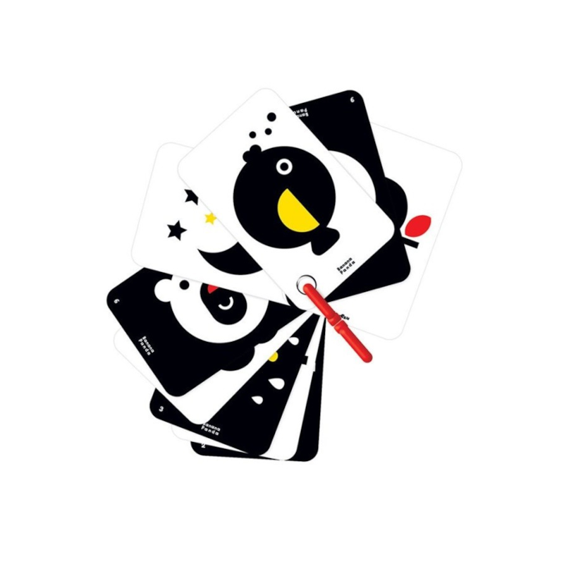 Os padrões destes flashcards são simultaneamente simples e claros, alinhados com precisão à perceção visual dos bebés. A inclusão de um anel de plástico permite a opção de pendurar os cartões de forma elegante junto ao berço ou ao carrinho.