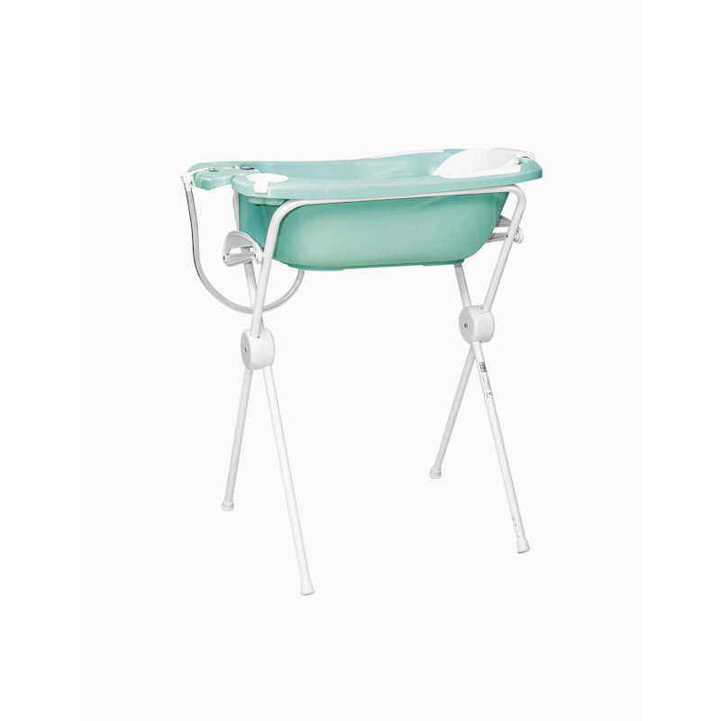 Possui um design moderno e muito funcional. Com copo embutido para lavar a cabeça do bebé, compartimento para os produtos de higiene e termómetro para medir a temperatura da água.