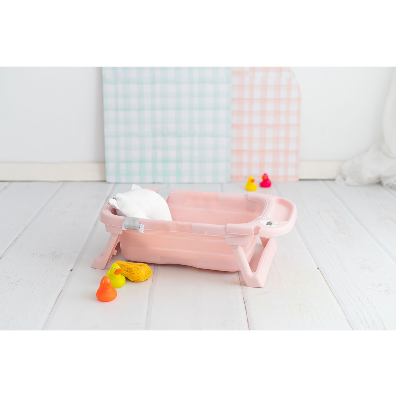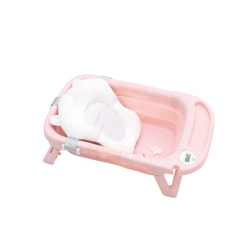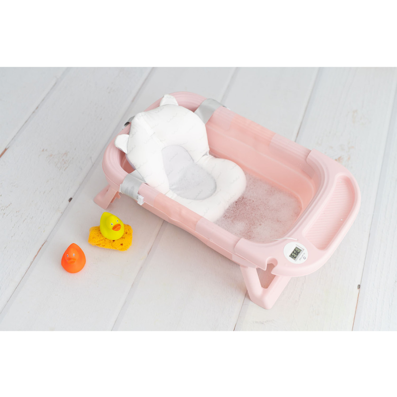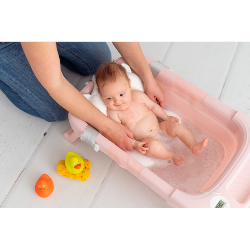 A banheira dobrável com rede especialmente projetada para proporcionar conforto e segurança durante o banho.