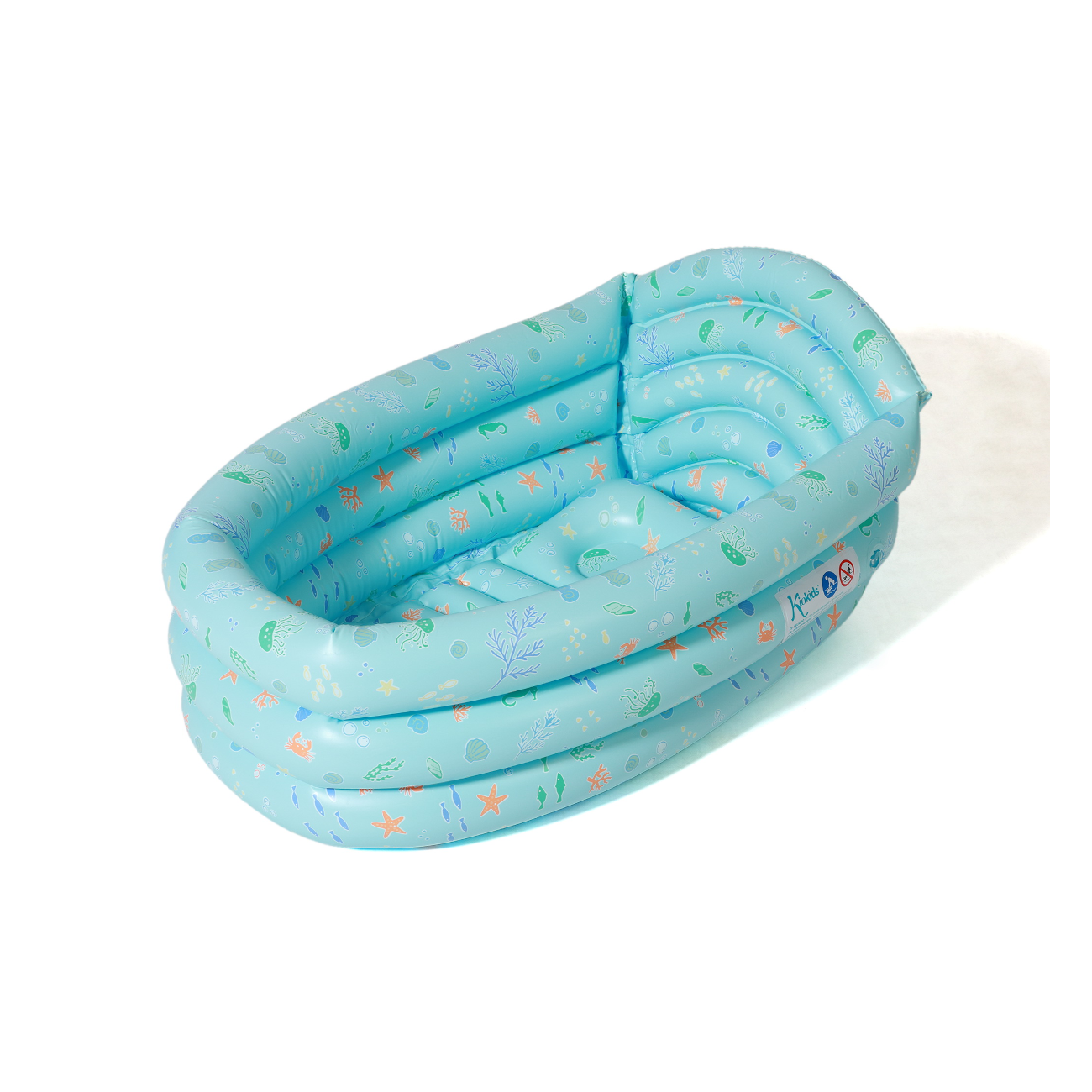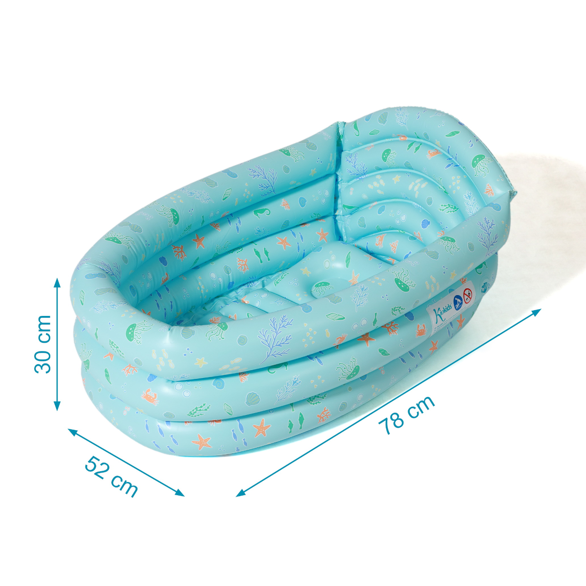 A banheira insuflável para bebé oferece uma solução segura e divertida para a hora do banho. Com o seu colorido design marinho, esta banheira transforma o banho numa aventura subaquática.