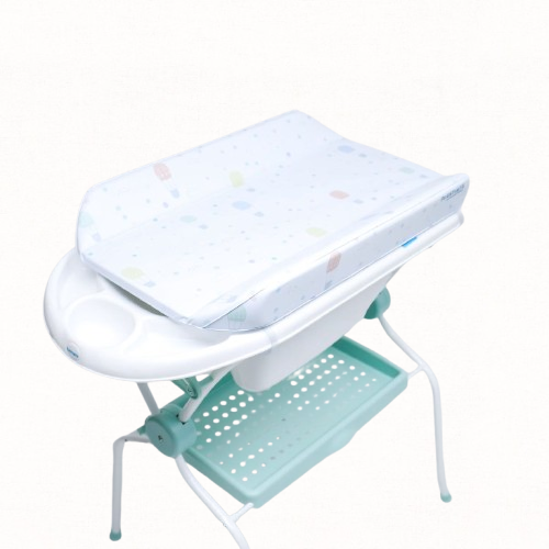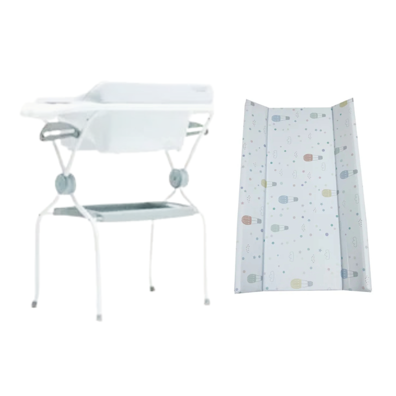 - Banheira rígida com trocador dobrável e sistema anti-queda.