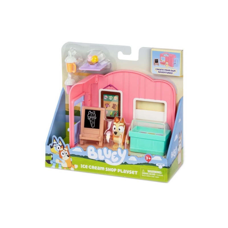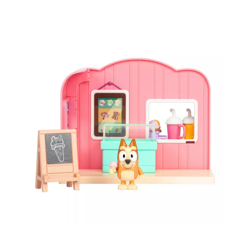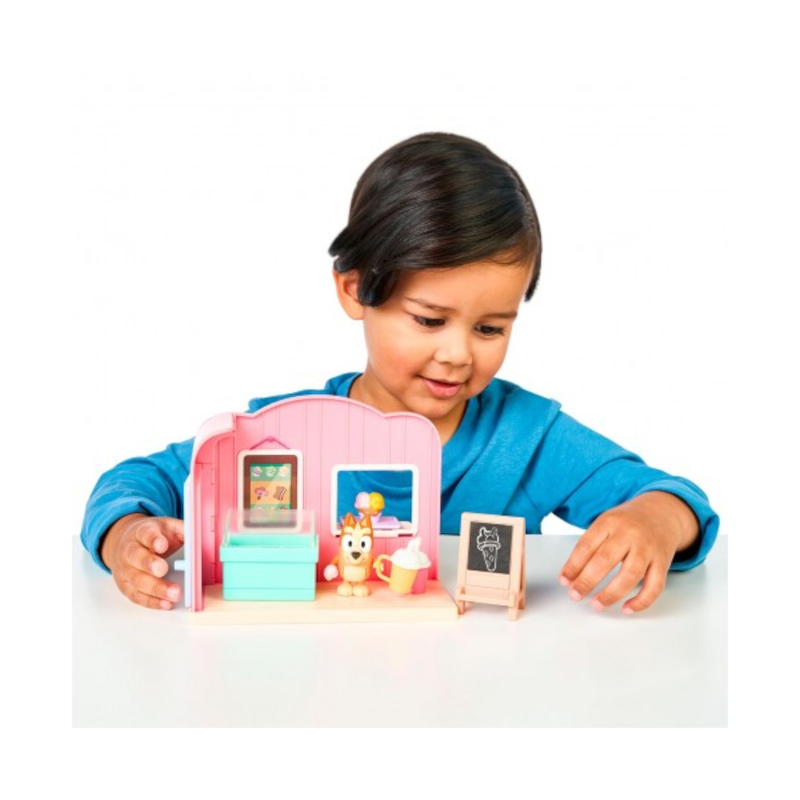 Leve a brincadeira divertida e imaginativa de *Bluey* para casa com o Playset da Sorveteria do Bluey. Agora o seu filho pode visitar a Sorveteria e ajudar a Bingo a escolher o seu sabor favorito de gelado!