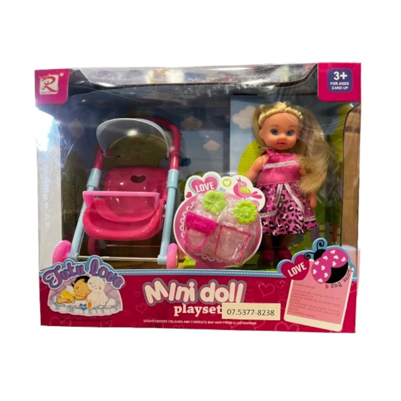 Passeia a tua linda bonequinha com este magnifico carrinho e os seus acessórios!