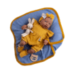 A Olie vem vestida com um macacão suave, envolta numa manta macia e acompanhada de um adorável peluche, o seu melhor amiguinho para momentos de aconchego.
