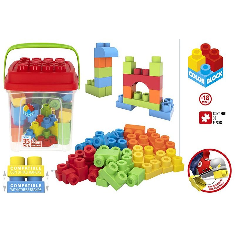 O Que Contém: Com este conjunto de 35 peças, não há necessidade de chamar uma grua! Deixe o seu bebé explorar as inúmeras possibilidades dos ladrilhos Maxi da Color Block. Desde muito pequenos, podem criar grandes obras! As peças Maxi unem-se de forma segura e divertida, tornando a diversão imediata.