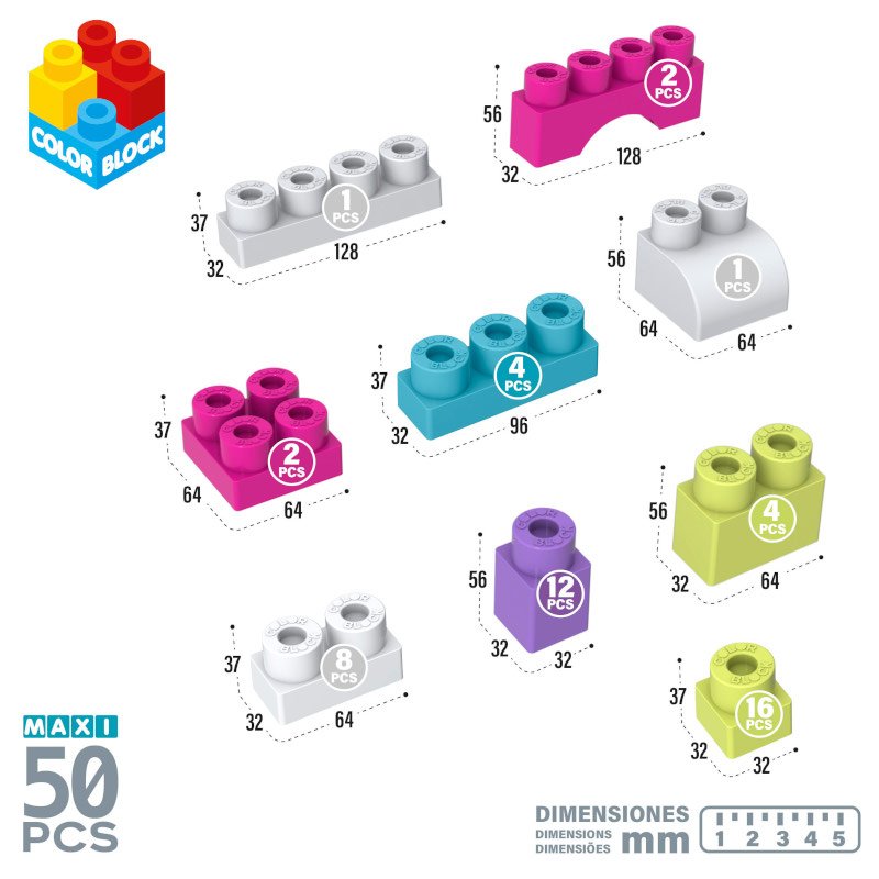Para +18 Meses: Permita que o seu pequeno construtor comece a jornada para a criatividade e aprendizado desde tenra idade. Adquira os Blocos Maxi da Color Block agora!