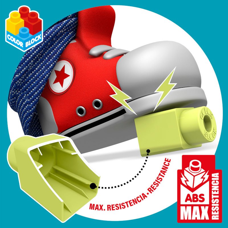 À Prova de Crianças: Peças fabricadas em plástico ABS indeformável, garantindo durabilidade e compatibilidade com outros conjuntos Maxi da Color Block.