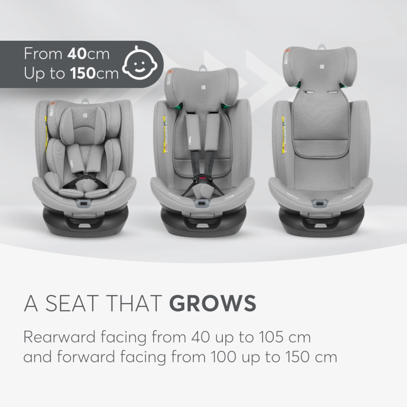 Utilizada virada para trás dos 40 aos 105 cm, ideal para recém-nascidos e bebés, e virada para a frente dos 76 aos 150 cm, acompanhando o crescimento da criança até cerca dos 12 anos.