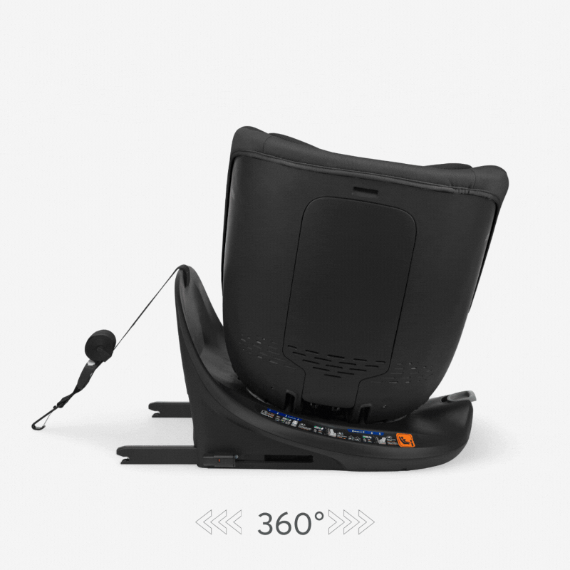 Cadeira com rotação de 360°, facilitando colocar e retirar a criança sem esforço.