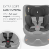 Arnés de 5 pontos com ombreiras acolchoadas para manter a criança corretamente segura.