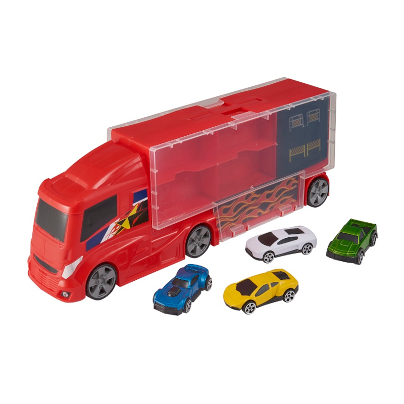 A maleta de transporte Teamsterz Metro City Truck é a maneira ideal para seu pequeno motorista armazenar e transportar sua coleção de carros de brinquedo. A maleta de transporte durável possui rodas de movimento livre, facilitando o transporte, uma alça de transporte para brincadeiras móveis e possui muito espaço de armazenamento para até 12 carros. Os 4 veículos Teamsterz incluídos têm escala de aproximadamente 3 polegadas e apresentam uma carroceria fundida de alta qualidade e rodas independentes de movimento livre. A maleta de transporte Teamsterz Metro City ajuda no desenvolvimento das habilidades motoras finas e da imaginação do seu filho.
