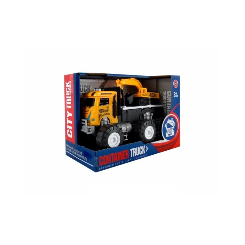Um camião de 22 cm que transporta uma máquina de obras, ideal para brincadeiras cheias de imaginação. Fabricado em plástico resistente, com luzes e sons para tornar a diversão ainda mais divertida.