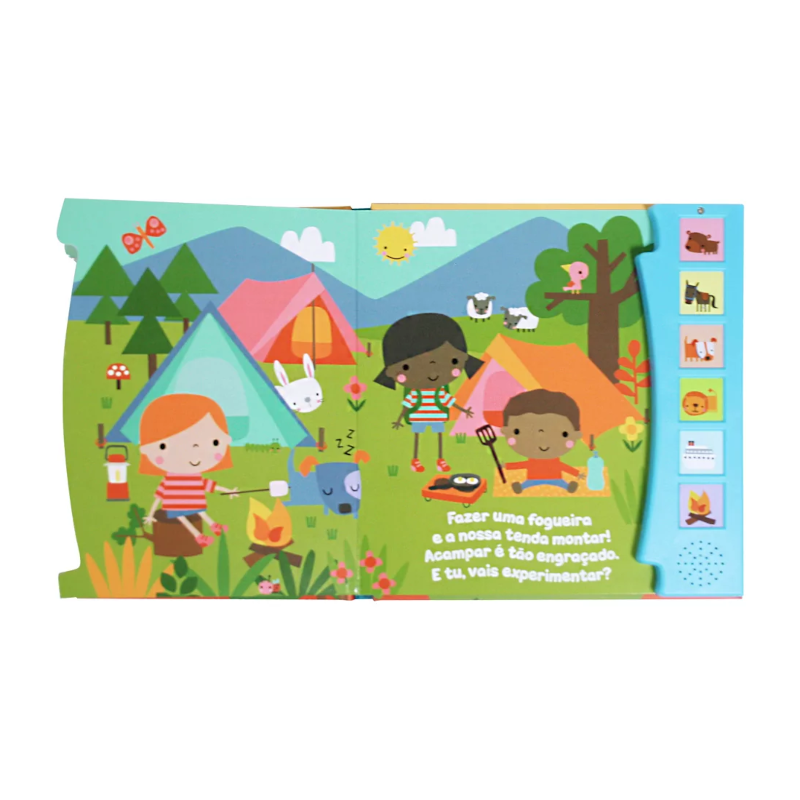 Prepara-te para uma viagem cheia de descobertas! Com este livro interativo, as crianças vão explorar diferentes lugares e conhecer animais incríveis. Basta pressionar os botões para ouvir os sons reais!