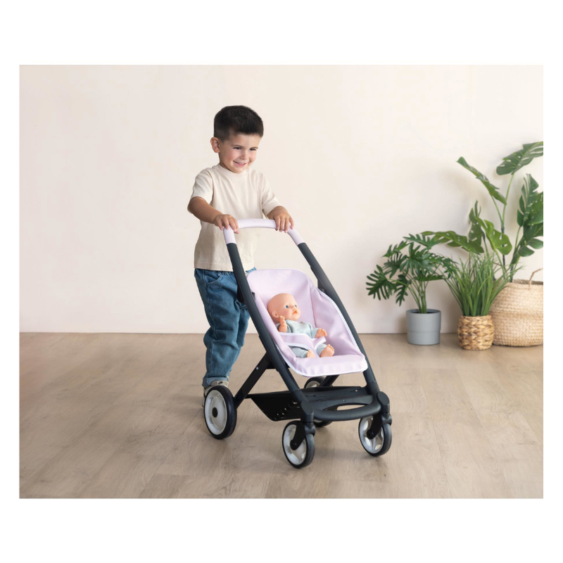 Leve a brincadeira para outro nível com o Carrinho de Bonecas 3 em 1, um companheiro versátil e encantador que transforma qualquer quarto, sala ou jardim num verdadeiro cenário de faz-de-conta. Pensado para bonecas até 42 cm, este carrinho adapta-se ao modo de brincar de cada criança, permitindo recriar momentos do dia a dia com todo o realismo e ternura.