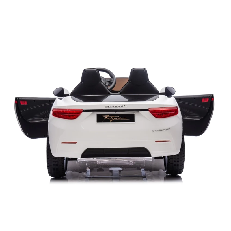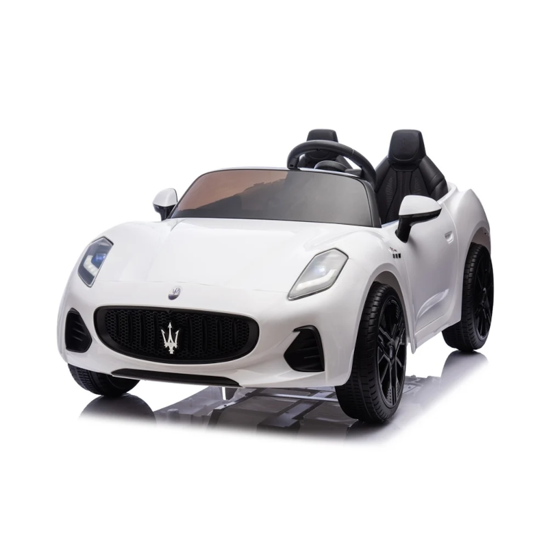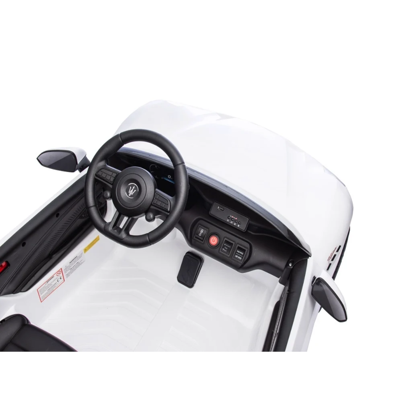 Experimente luxo, potência e conforto com o Maserati GranTurismo Folgore, um automóvel infantil de 2 lugares e 12 V – especialmente concebido para jovens apaixonados por automóveis com grandes sonhos!
