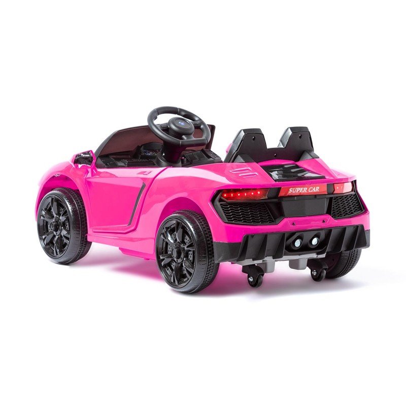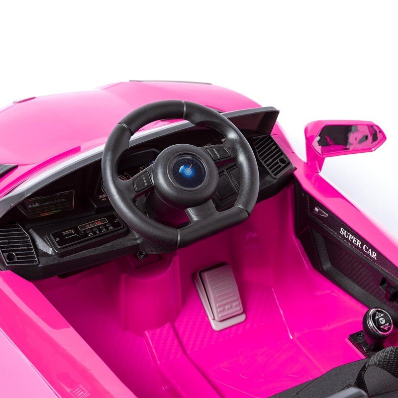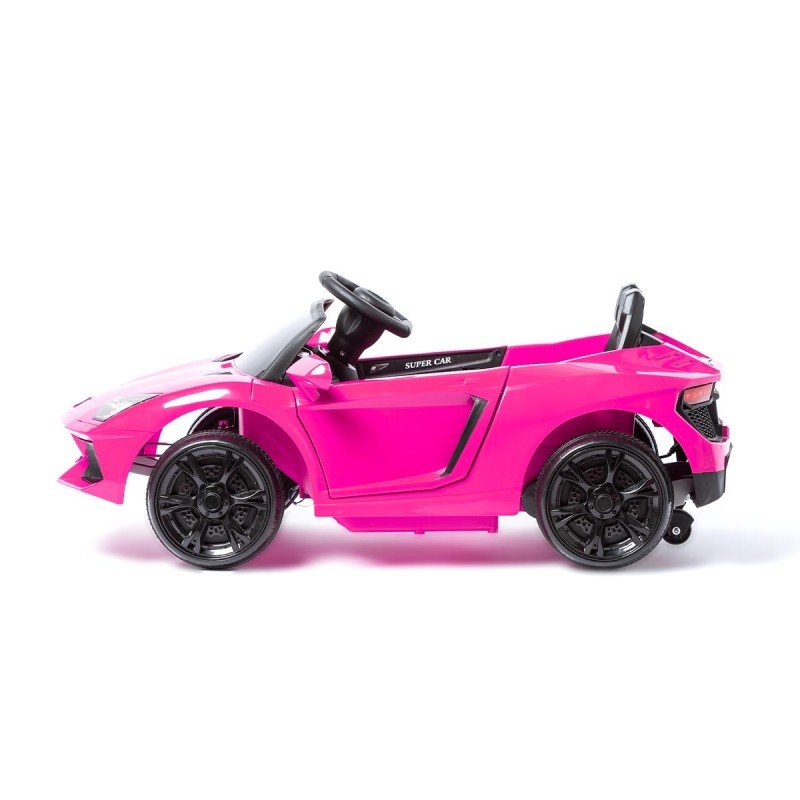 Espetacular carro elétrico para crianças com estilo Lamborghini 12v, com rodas de apoio traseiras para o pai arrastar o carro quando ele ficar sem bateria.