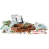 O set inclui um terrápio onde podes recriar, montar e personalizar o mundo pré-histórico dos dinossauros.