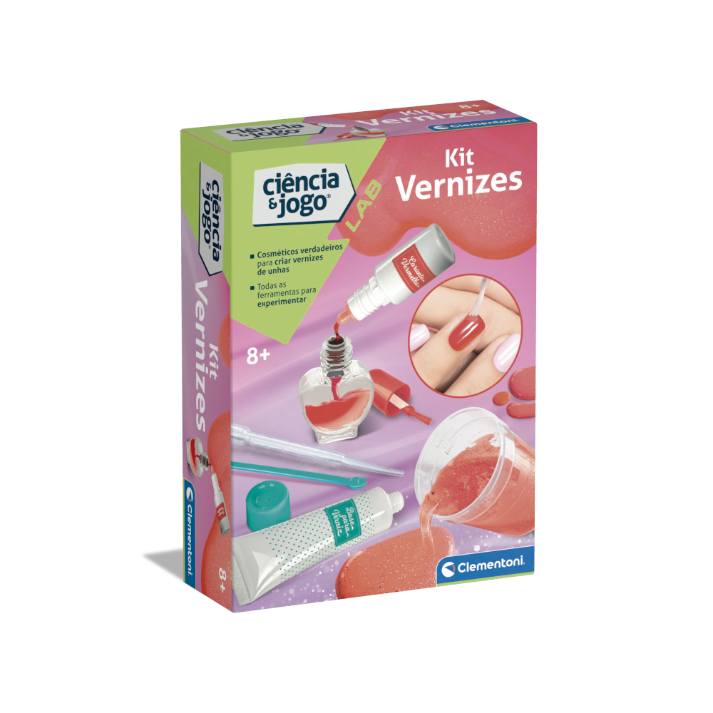 O Kit Vernizes da Clementoni é um kit compacto com componentes cosméticos reais para misturar e criar verniz para unhas colorido.