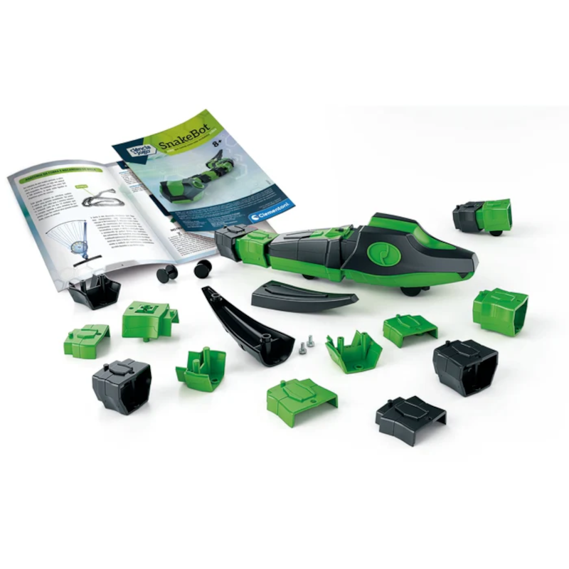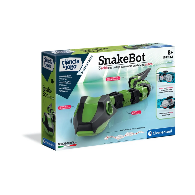 Constrói uma cobra robótica de 40 cm que se move como uma verdadeira! Encaixa os 12 segmentos, liga o motor e vê-a rastejar de forma realista, tal como uma cobra de verdade.