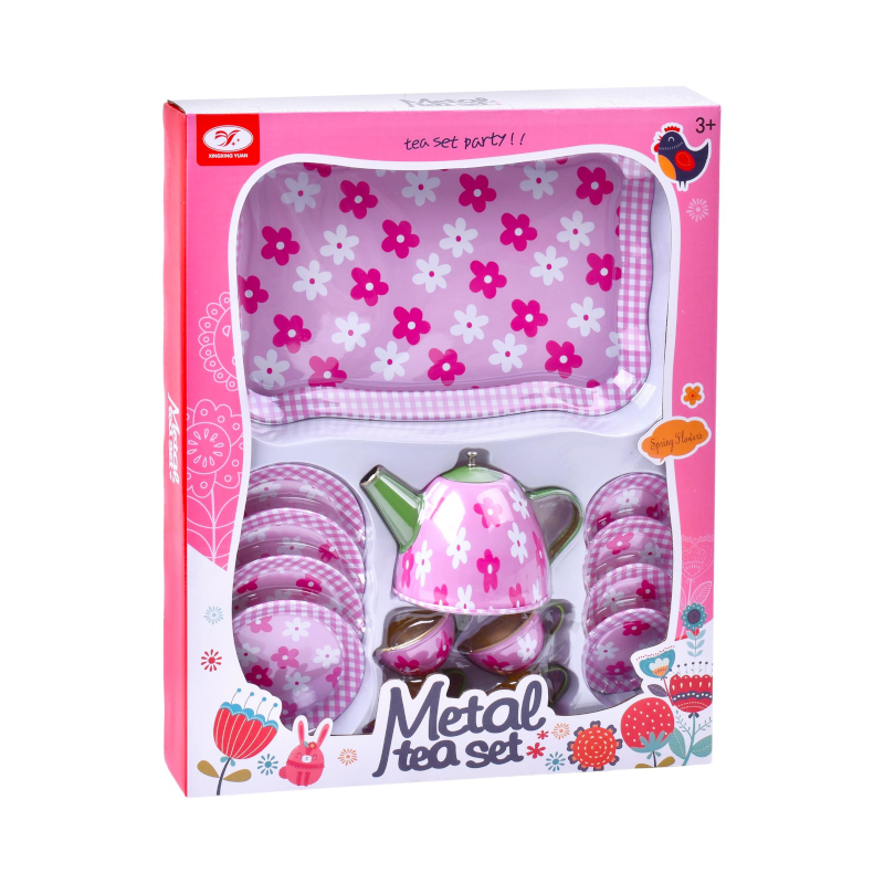 Conjunto de chá fabricado em metal, não pesa muito e todas as peças tem um tamanho adequado para as mãozinhas dos pequeninos para que possam brincar comodamente.