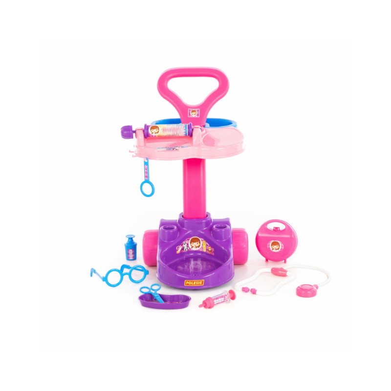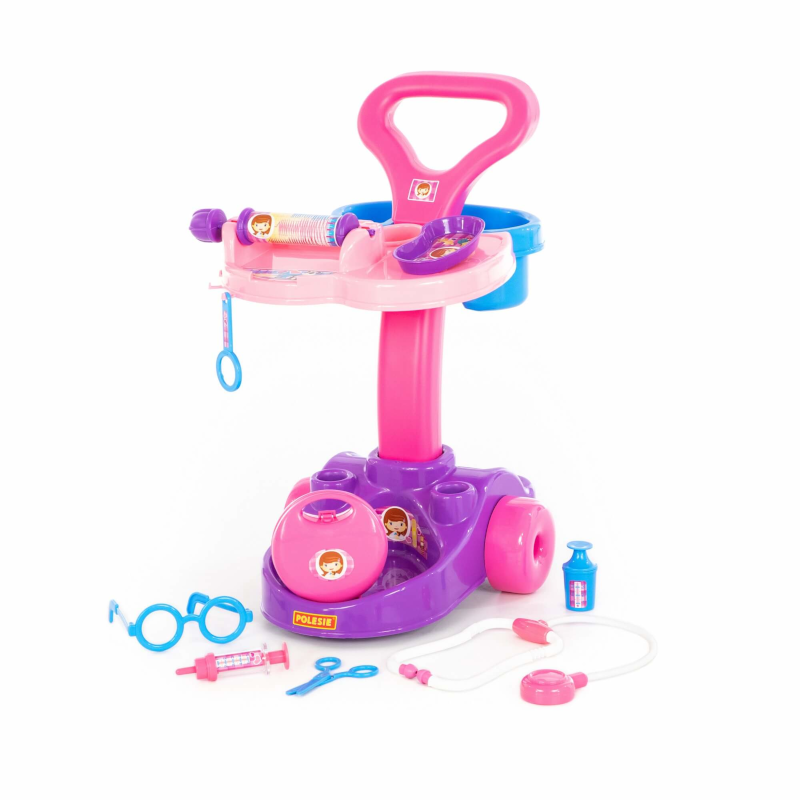 - carrinho com duas rodas e uma alça, sobre o qual se encontra um aparelho para medição de pulso e pressão e vários nichos para armazenamento e transporte dos instrumentos necessários a cada médico;