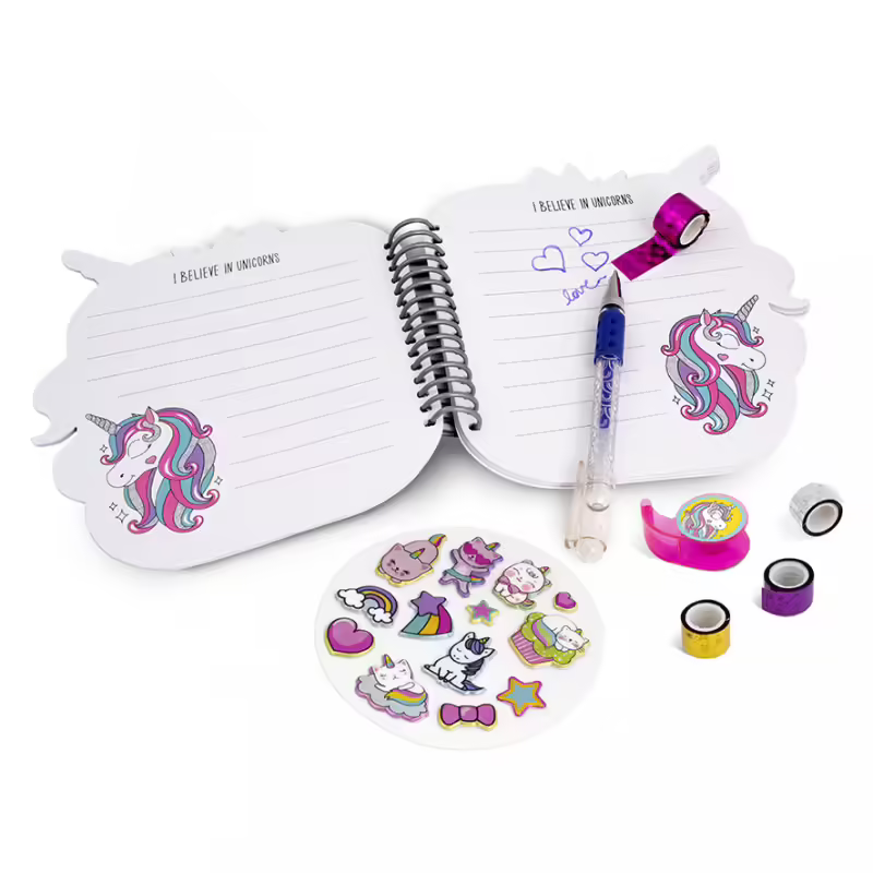 Conjunto de diario, caneta e adesivos macios para manter seus segredos escondidos e decorá-los como quiser..