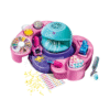 Contém muitos vernizes coloridos, limas, glitter e uma seleção de decorações para unhas.