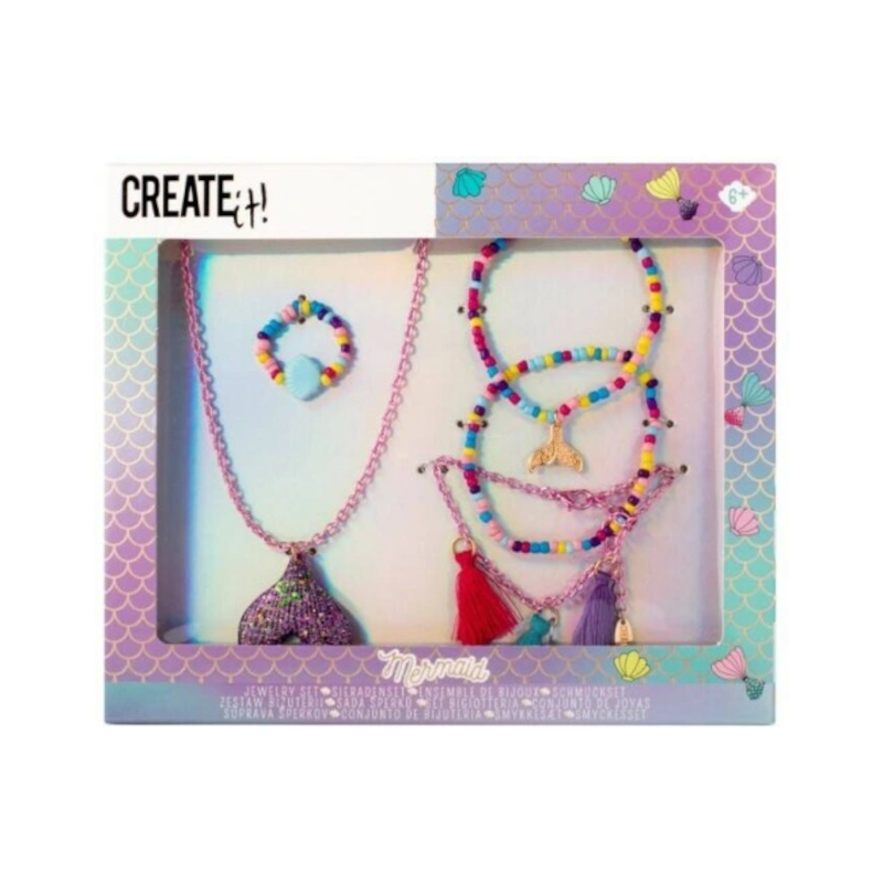 “Um encantador conjunto de bijuterias em forma de sereia. Este conjunto foi criado para todos aqueles que adoram o mundo mágico. Inclui anéis, pulseiras e colares com pingente. Diversidade de modelos. Descubra a magia e a beleza com este conjunto único. Perfeito para pequenas sereias que querem brilhar com estilo.