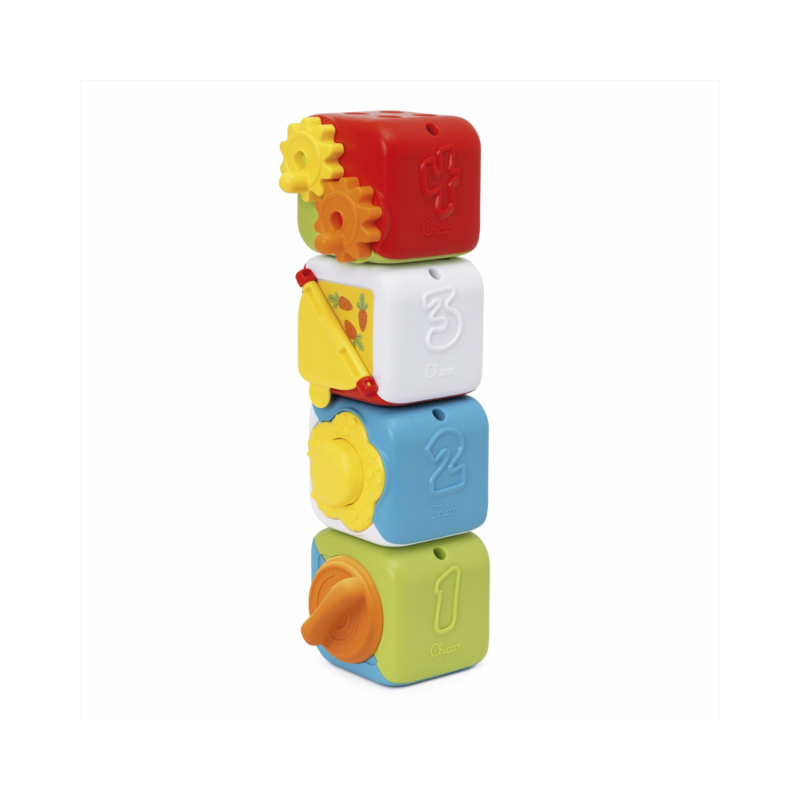 Quatro cubos coloridos, cheios de atividades para estimular as habilidades manuais e lógicas da criança. Jogabilidade evolutiva para acompanhar a criança através das diferentes fases de crescimento.