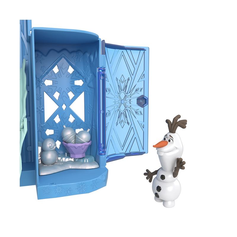 O conjunto abre-se para revelar uma casa de bonecas com várias áreas de brincadeira, repletas de detalhes que as crianças reconhecerão do filme. Entre elas, encontram-se um escorrega desdobrável com trenó, uma escada de gelo que leva à varanda e até uma sala secreta para guardar os tesouros do Olaf!