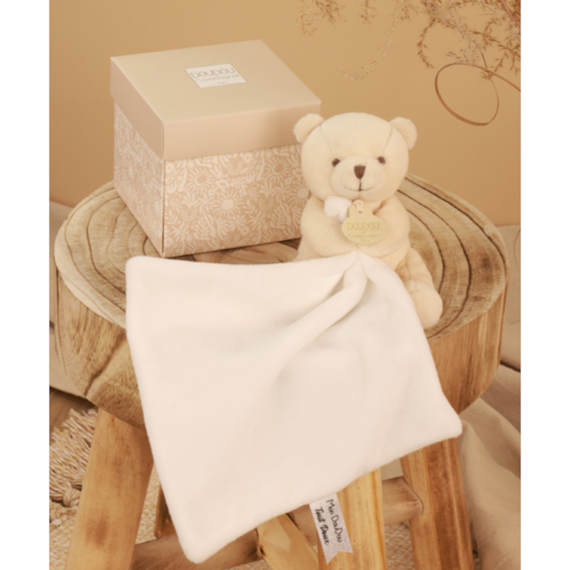 Um ursinho doce e macio, perfeito para acompanhar o bebé desde o nascimento. Feito com todo o cuidado e qualidade, este pequeno companheiro oferece conforto, segurança e muito carinho.