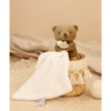 Um ursinho doce e macio, perfeito para acompanhar o bebé desde o nascimento. Feito com todo o cuidado e qualidade, este pequeno companheiro oferece conforto, segurança e muito carinho.
