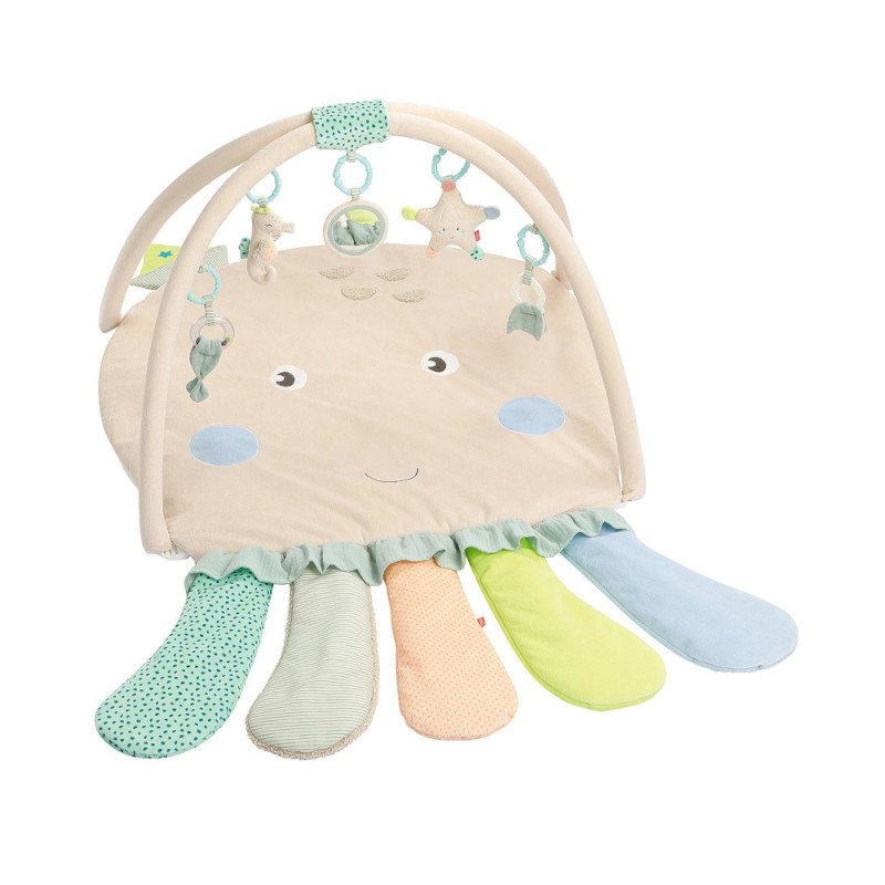O tapete de atividades 3D Polvo é um brinquedo multifuncional projetado para estimular o desenvolvimento sensorial e motor dos bebês desde o nascimento.