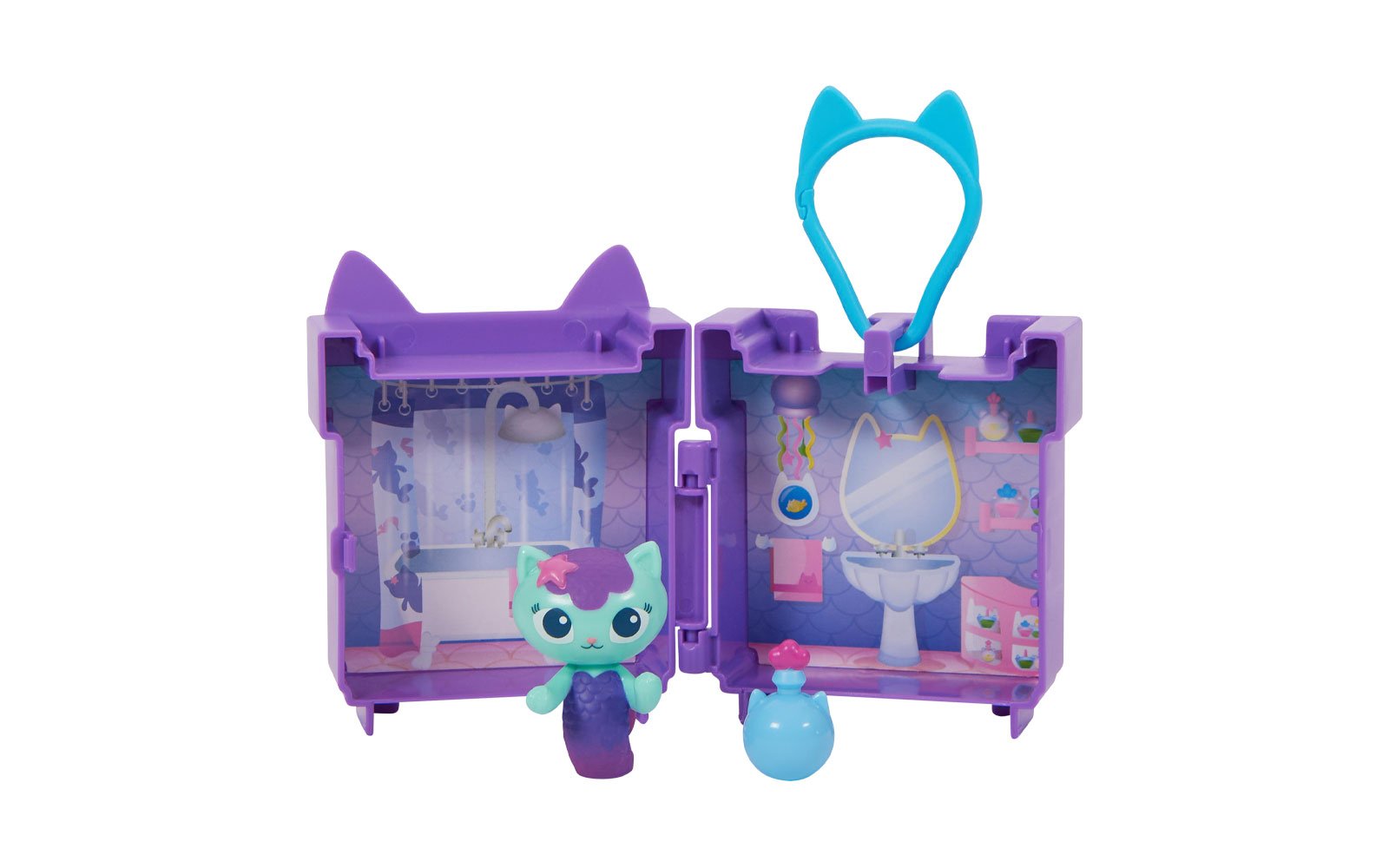 Depois, tal como a Gabby faz no início de cada episódio, desembala a tua entrega da casa de bonecas e descobre o acessório surpresa, uma garrafa de perfume, para usar na tua aventura de jogo!