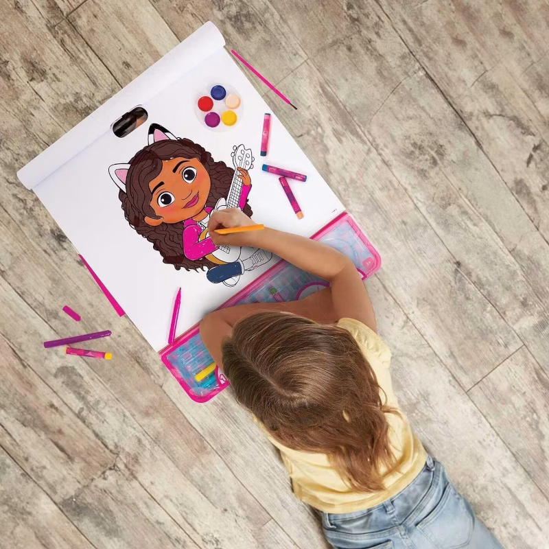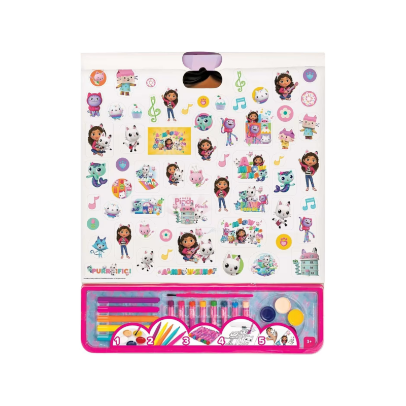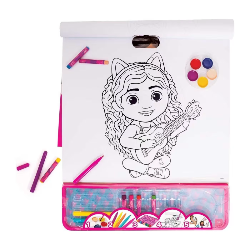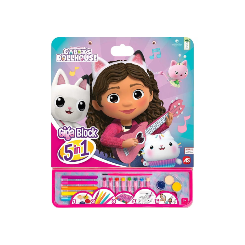 - 1 bloco de desenho com 25 páginas pré-impressos com desenhos da Gabby`s Dollhouse