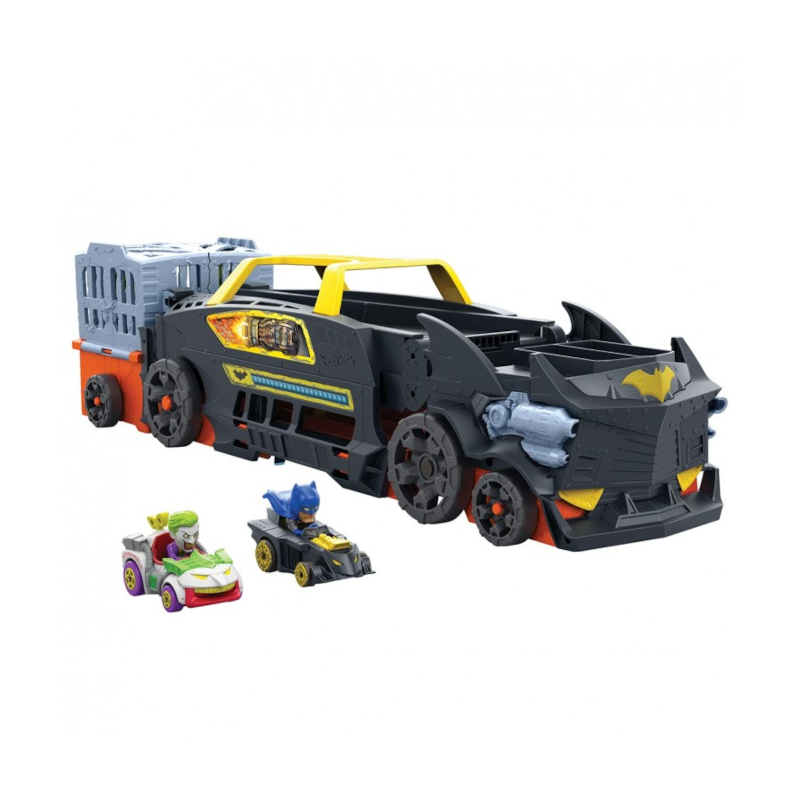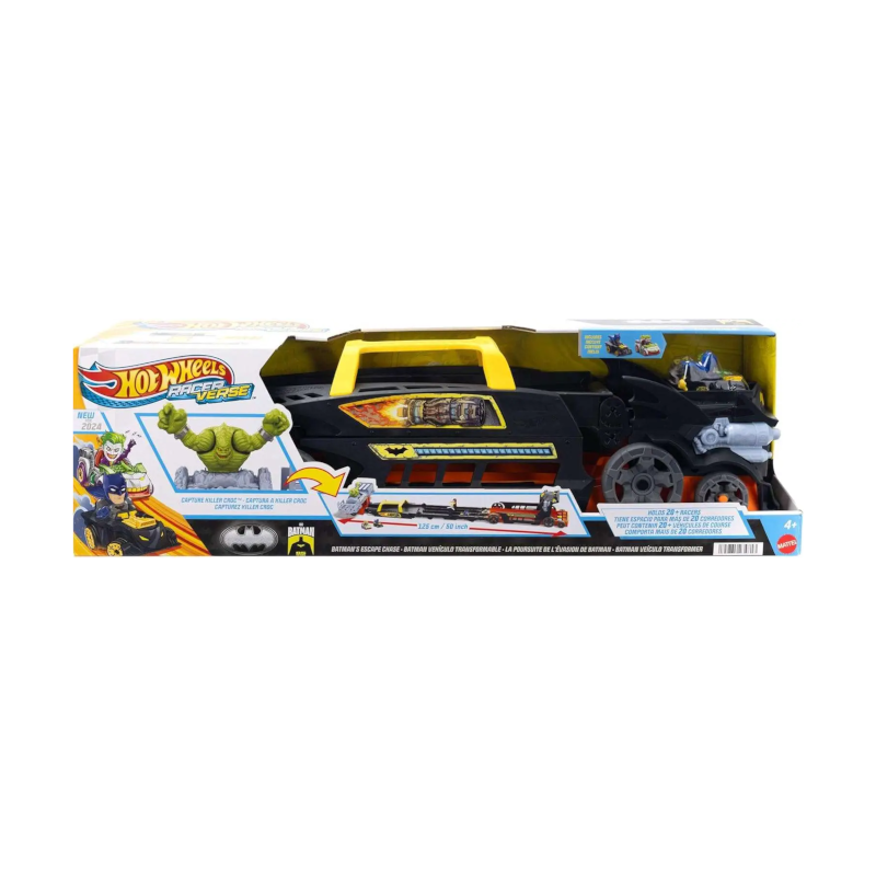 Este incrível conjunto desafia-te a lutar contra o crime e dominar a pista de corrida ao estilo do Cavaleiro das Trevas. Com três pistas, cada uma equipada com o seu lançador de mola, a diversão está garantida!
