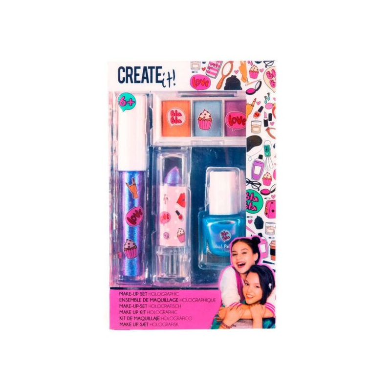 >    >  6 anos +, Brinquedos, Faz de conta, Maquilhagem  >  Kit de maquilhagem Holográfico – Create it!