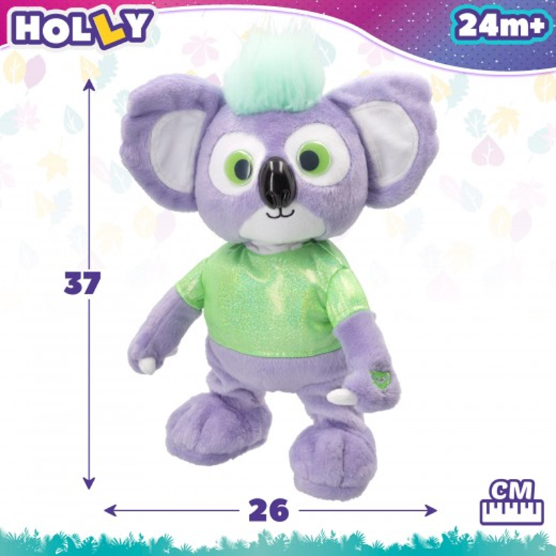 • Este Koala de peluche lilás e verde de toque suave com corpo articulado, é alimentado por 3 pilhas AA incluídas.