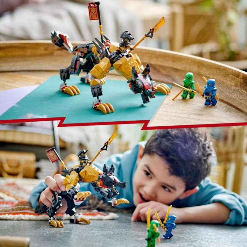 Com um temível brinquedo monstruoso e 3 mini figuras, este set Cão Caça-Dragões Imperium oferece às crianças tudo o que precisam para desfrutar de intermináveis horas cheias de diversão enquanto encenam as ousadas batalhas da série de televisão NINJAGO Dragons Rising.