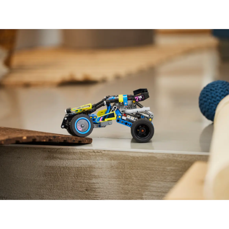 Inclui detalhes inspirados nos verdadeiros buggys de corrida, como suspensão traseira funcional, motor de 4 cilindros móvel e direção flexível, garantindo uma experiência de construção e jogo cheia de movimento.