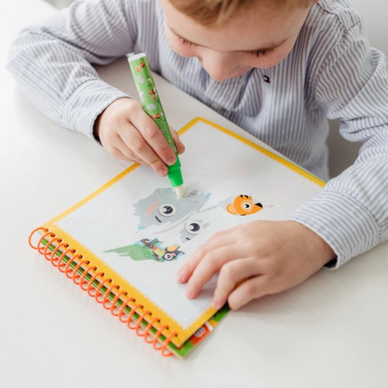 Descubra o quão criativo você pode ser com a água e dê vida ao mundo subaquático. Ideal para pequenos mergulhadores de águas profundas, amantes dos animais e futuros artistas! Encha a caneta especial incluída com água e comece a desenhar. Quando a água atinge o papel, aparecem os mais belos desenhos de todos os seus animais selvagens favoritos. Quando o papel secar você poderá recriar os cinco desenhos, para se divertir continuamente. Útil para casa e na estrada!