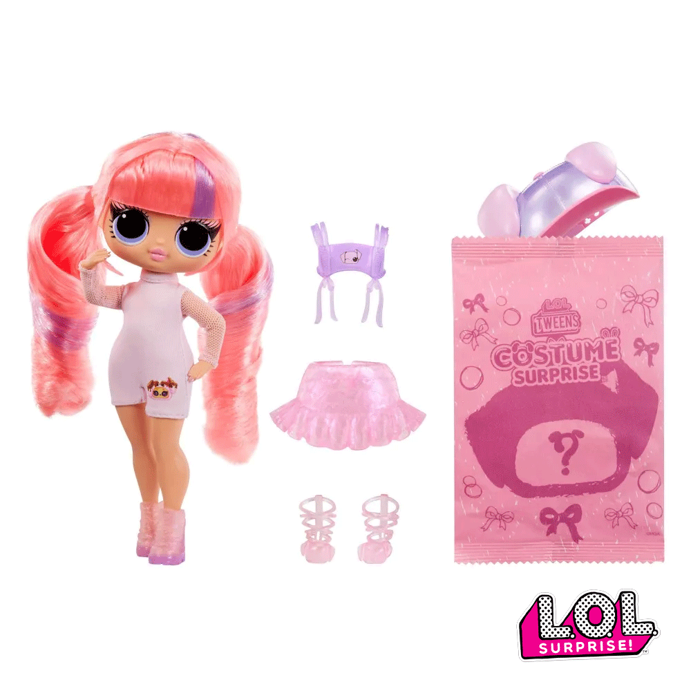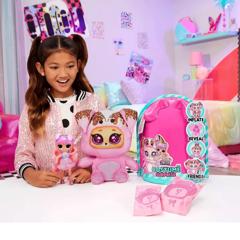 - Inclui a boneca Tweens Ali Dance, fantasia insuflável de panda roxo, e diversos acessórios de moda.