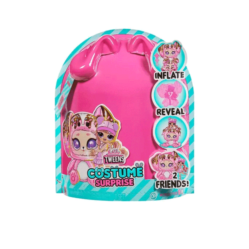 Prepare-se para o derradeiro unboxing e descubra uma experiência única de surpresas! Ao rasgar o fecho na parte inferior da embalagem, levante o invólucro cor-de-rosa e revele o misterioso papel de embrulho que, ao ser insuflado, ganha forma! Quando o papel estiver cheio, rasgue-o para encontrar uma encantadora fantasia de panda roxo.