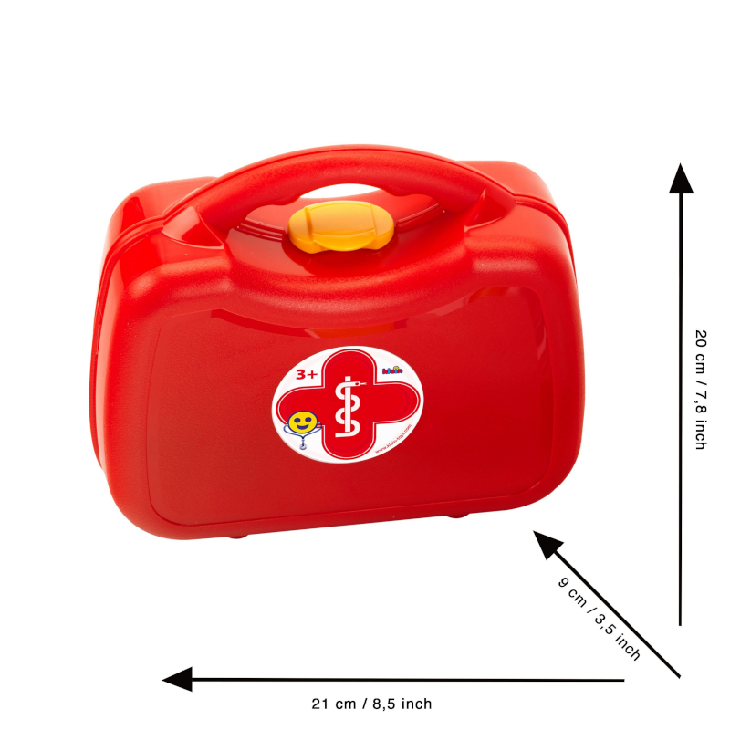 O conjunto inclui acessórios realistas para consultas e cuidados médicos, como: estetoscópio, termómetro, pensos, seringa, agulha de vacina e muito mais. Tudo pensado para uma experiência de jogo segura e educativa, que incentiva o jogo simbólico, a coordenação motora e a criatividade.
