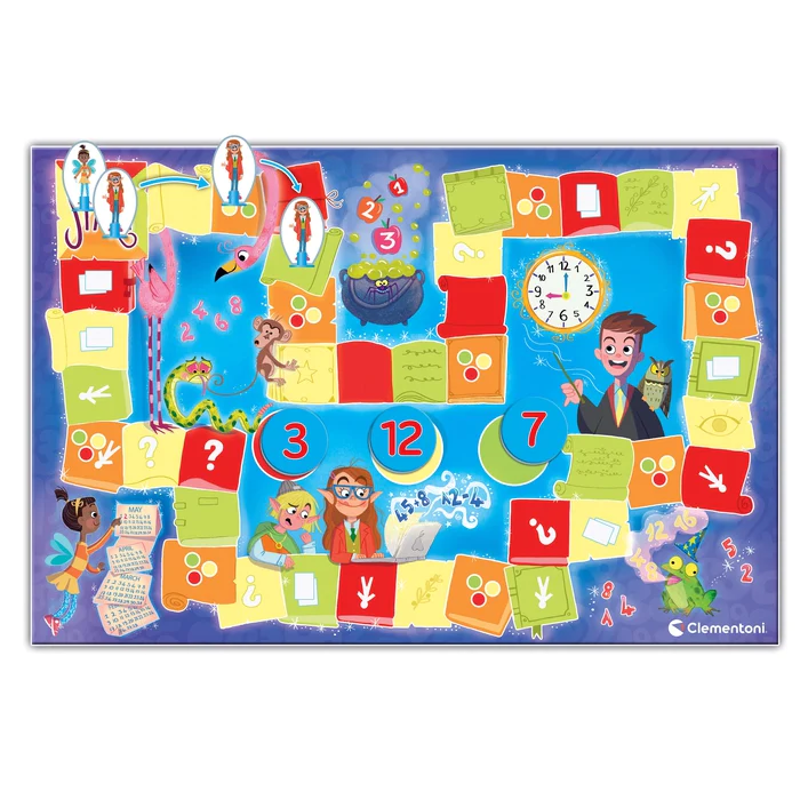 Ao completar o divertido jogo de percurso, a criança pode exercitar as suas capacidades de cálculo e de orientação espacial.