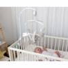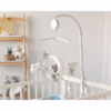 A base fixa-se facilmente às barras do berço e o mecanismo de corda simples ativa o movimento e a música, sem necessidade de pilhas. Ideal desde o nascimento, é um acessório encantador e funcional para o quarto do bebé.
