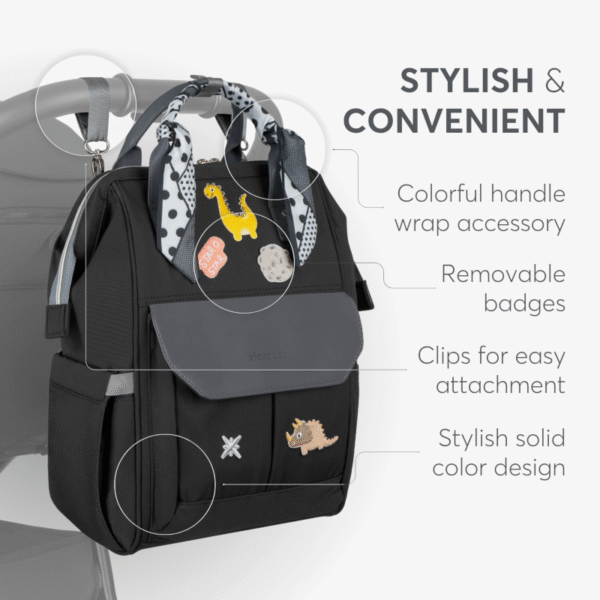 - Inclui um trocador, clipes para fixação no carrinho e uma abertura com zíper de fácil acesso na parte traseira para alcançar o fundo do compartimento principal, facilitando as trocas de fraldas e os passeios diários.