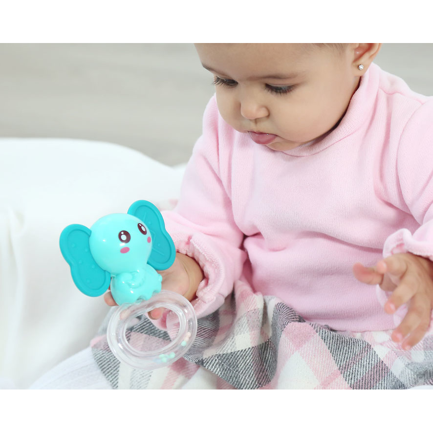 O nosso chocalho é o brinquedo perfeito para o seu filho brincar e aliviar os desconfortos associados à dentição do bebé.